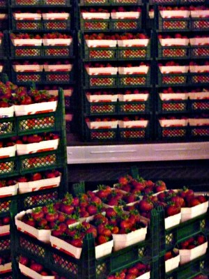 Sie bekommt Erdbeeren geliefert.