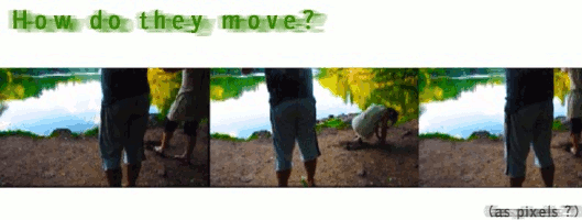 - Image 1: how do they move as pixels? | Porto Alegre | Montagem de Gabriela Canale, imagem de Carla Vendramin, performance de Letícia Castilhos e Paulo Guimarães