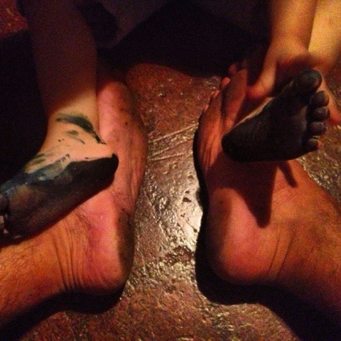 Pé sujo e sorriso na cara