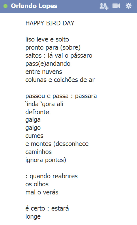 happy bird day | … | Orlando Lopes (transformado em imagem por gabriela canale)