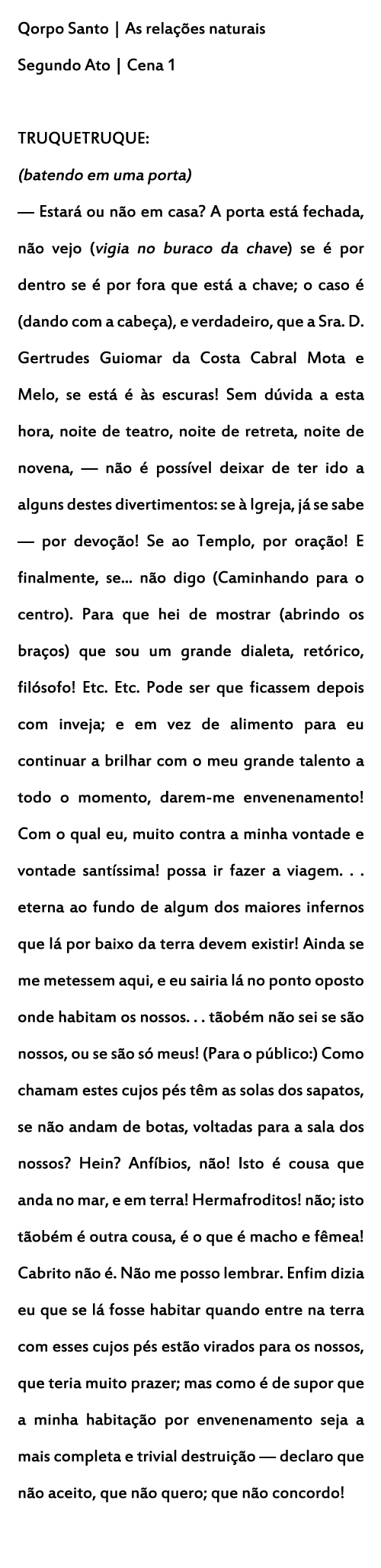 [ Sugestão de diálogo: fazer uma leitura de um texto de Qorpo-Santo. Quase todas as peças dele estão disponíveis no Domínio Público. Basta preencher o campo “tipo de mídia” com a opção “texto” e o campo “autor” com “Qorpo-Santo”. Aqui está o link. ]